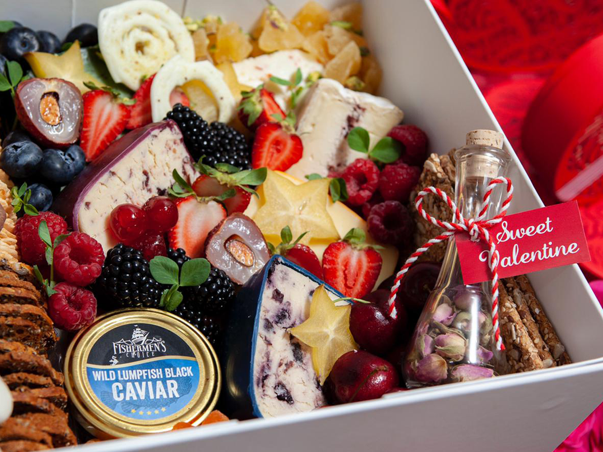 For a classic spread, the crave hamper ($125) features an array of goodies like cheese, prosciutto, salami, pumpkin sausage rolls and sweet potato hummus, with a bottle of chandon.